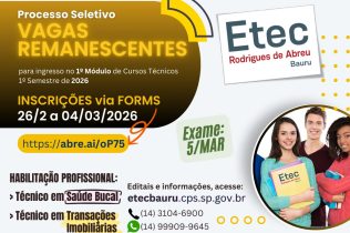 A Etec Rodrigues de Abreu celebra, na data de hoje, 20 anos de dedicação à educação pública, gratuita e de qualidade, consolidando-se como referência regional na formação técnica e no ensino médio integrado....